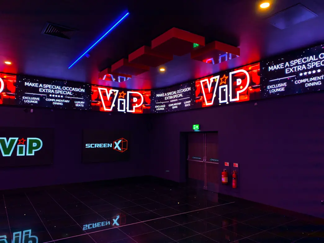 Digital menu boards were installed in food and beverage areas, leveraging proven strategies to increase sales of concessions and promote VIP seating options.