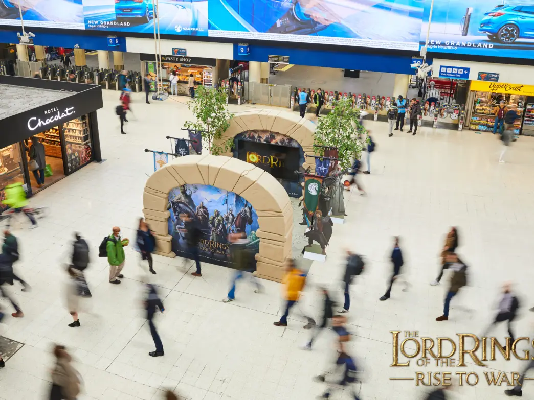 To mark the release of the latest Lord of the Rings film, the client sought a bold, immersive activation that would transport commuters into the heart of Middle-earth. The brief called for a visually arresting, interactive experience that could captivate a high-footfall audience at one of London’s busiest transport hubs—Waterloo Station. The goal was to merge physical and digital storytelling, allowing users to step into the cinematic universe and become part of the film’s narrative.